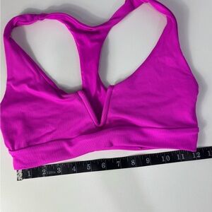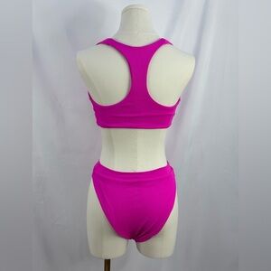 Hot pink 2 piece race back high rise bikini set, only tried on but tags have been removed. Does not have bra pads, does not have an opening to insert any! Soft material no flaws. See photos for measurements.