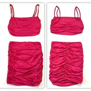 Hot Pink 2 Piece Body Con Cami Crop Top and Ruched Mini Skirt Dress Medium - EUC