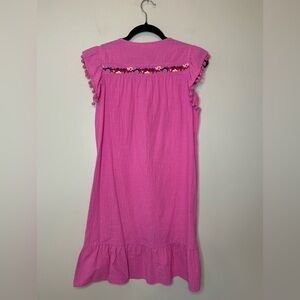 Hot Pink Baby Doll Ruffle Sleeve Embroidered Dress Size S