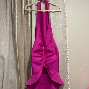 Hot Pink Backless Mermaid Hem Bandage Cocktail Dress - Small