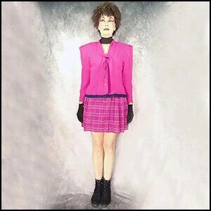 Hot Pink Barbiecore Blazer Jacket, Big Power Shoulders! - 90s Vintage