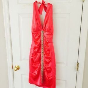Halter style dress, back zipper, front lace down middle, tie around neck halter for perfect fit! Juniors 3/4 . Worn twice.