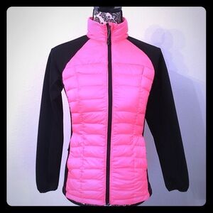 Like new - No brand tag found. Super cute thick hot pink and black coat.