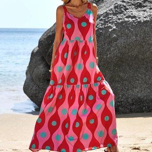 Hot Pink Boho Womens Allover Print Ruffle Hem Cami Dress