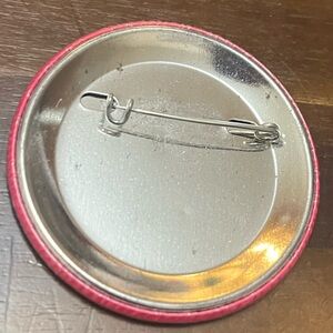 Round button pin with 'Life's short, wear hot pink!' slogan. Vibrant hot pink color.