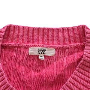 Hot Pink Cable Knit Cropped Sweater by Madden NYC | Size M | 100% Cotton