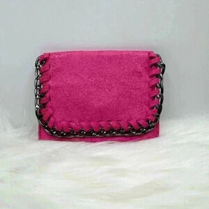 Hot Pink Simple Card Holder Purse With Chain Detail Lightweight