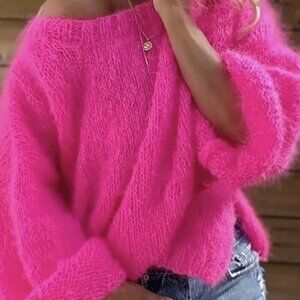 Hot Pink Casual Women's Fuchsia Oversized Pullover sweater top