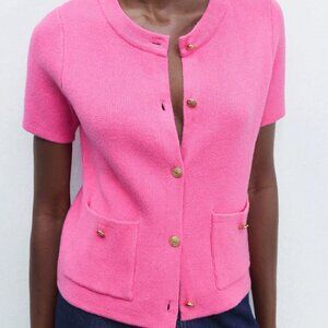 Hot Pink Casual Women's Knitted Elegant button down Cardigan