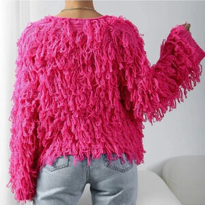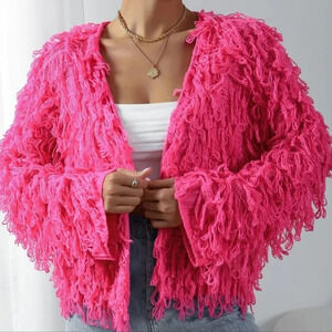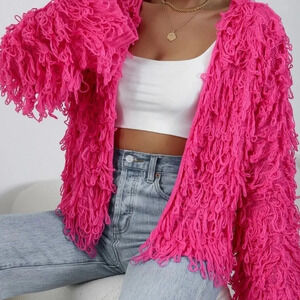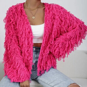 Hot Pink Casual Women's Shaggy Knit Duster Cardigan