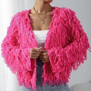 Hot Pink Casual Women's Shaggy Knit Duster Cardigan