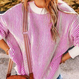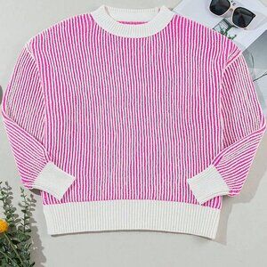 Hot Pink Casual Women's Striped Long Sleeved Round Neck Loose Pullover top