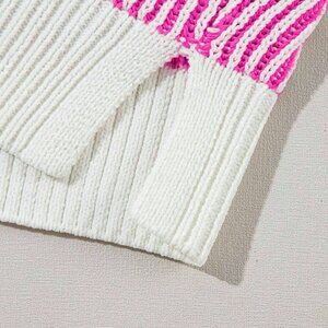Hot Pink Casual Women's Striped Long Sleeved Round Neck Loose Pullover top