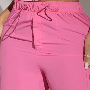 Hot Pink Casual Womens Zipper Patch Pocket Side Pants