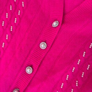 Hot Pink Charter Club Cashmere Pearl Detail Cardi