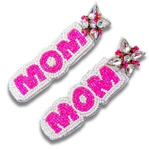 Hot Pink Cool MOM Seed Beaded Crystal Earrings