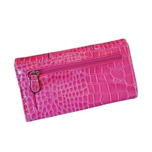 Hot Pink Crocodile Embossed Clutch Or Long Wallet, Tri-Fold
