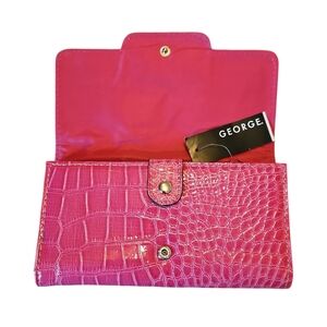 Elevate your style with the George Pink Crocodile Embossed Women's Clutch. This chic accessory features a vibrant pink hue and a sophisticated crocodile pattern, perfect for any occasion.