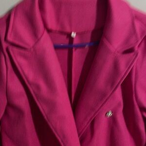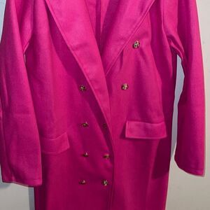Command attention in this vibrant hot pink coat dress. This standout piece features a sophisticated double-breasted design, complete with decorative buttons that add a touch of elegance. The structured silhouette ensures a flattering fit, making it perfect for both professional and social settings. Imagine yourself turning heads at a cocktail party, making a bold statement at a business meeting, or adding a pop of color to a night out.