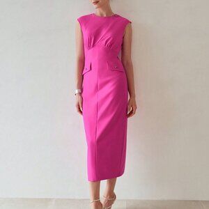 Hot Pink Elegant Women's Flap Detail Split Hem Cap Sleeve Dress