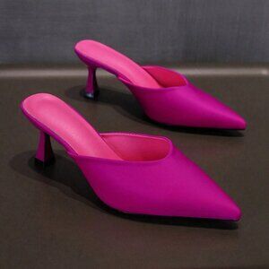 Hot Pink Elegant Women's Pointed Toe Slip-On High Heel Sandals