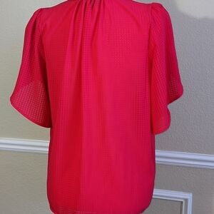 Hot Pink Flutter Sleeve Gingham Sheer Blouse by Who What Wear