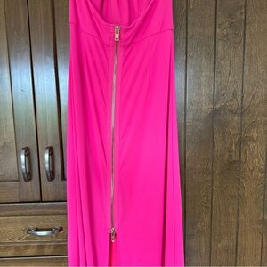 Caribbean Queen formal halter hot pink dress with slit and unique zipper back. Perfect for your next beach holiday or cruise! Please note slight mark in photo.