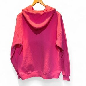 Vibrant pink hoodie with bold graphic print. Features a playful design on the front.