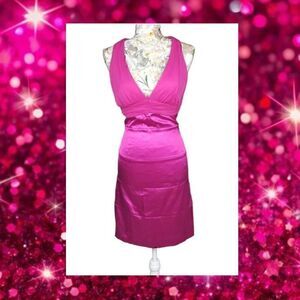 Homecoming Magenta Pink Halter Tight Bodycon Mini Cocktail Dress sz 3 juniors in EXCELLENT Condition! Stretch satin fabric hugs your curves. Contrasting matte halter with stylish open back. Fits tightly- see photos for details and approximate measurements.