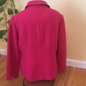 Super cute hot pink jacket. Flattering, tailored fit. Zips up and has zipped pockets. Perfect for dressing up or down. Worn once