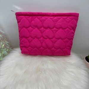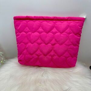 Hot Pink Large Heart Quilted Cosmetic Bag