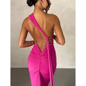 Hot Pink Maxi Long Sheath Dress Open Back, Backless