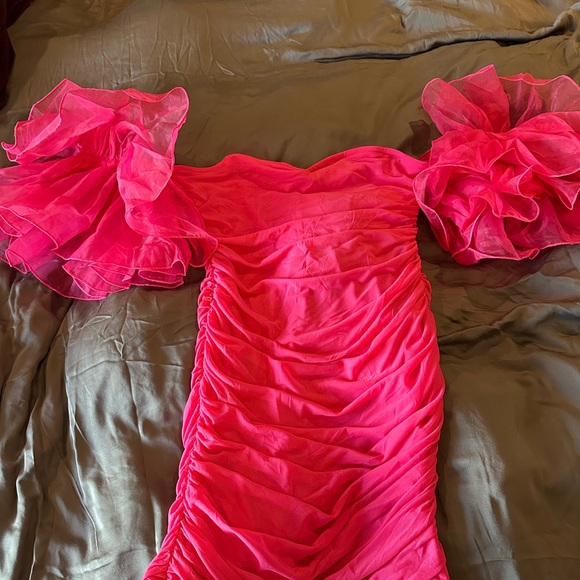 Hot Pink Off-Shoulder Ruffled Bodycon Dress