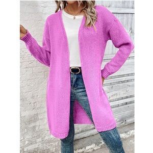 Hot Pink Open Cardigan Long Sleeve Hip Length
