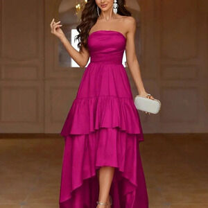 Hot Pink Party Women's Pleated Strapless Sleeve Evening Dress