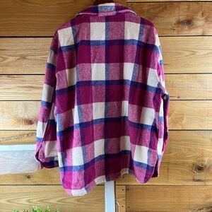 This Shacket is in excellent condition. It features a gorgeous blend of hot pink, purple and white. It even has pockets. Can be worn as a shirt or a jacket. It is very heavy and warm.
