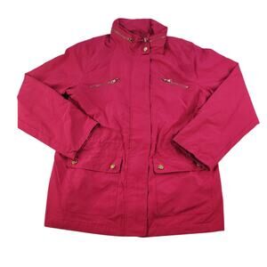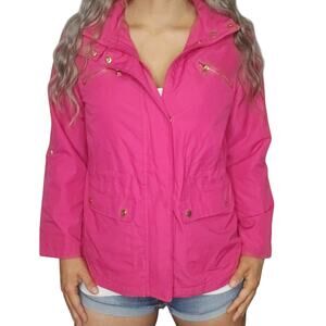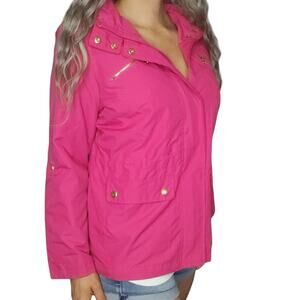 Hot Pink Rain Jacket Womens PM Medium Petite Gold Full Zip Hooded Spring Fall