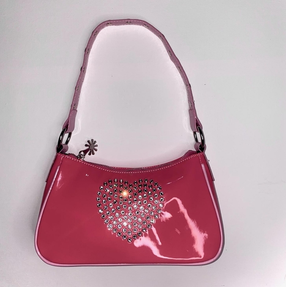- Hot pink and pastel pink patent with rhinestone heart and studded strap