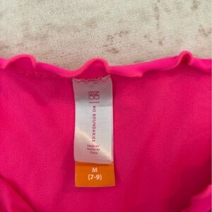 Vibrant hot pink bikini bottom with playful ruffle design