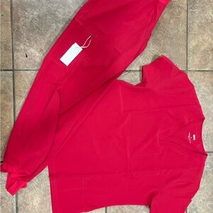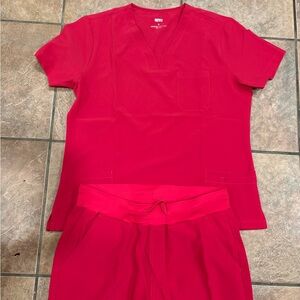 Bright Pink scrub set with top and pants. Comfortable and professional. Never worn with tags size medium