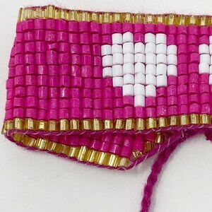 Hot Pink Seed Bead Adjustable Hearts Bracelet