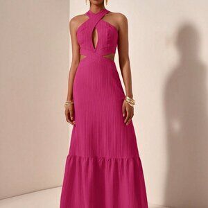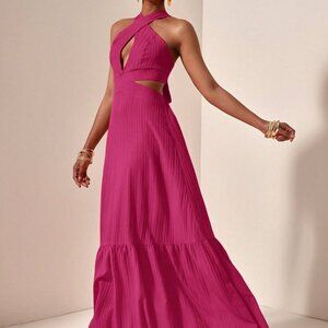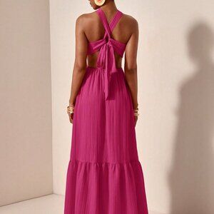 Hot Pink Sexy Women's Cross Halter Neck Backless Maxi Dress
