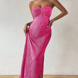 Hot Pink Sexy Women's Elegant Pleated Strapless Dress