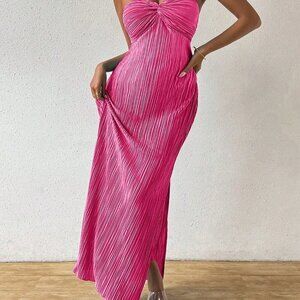 Hot Pink Sexy Women's Elegant Pleated Strapless Dress
