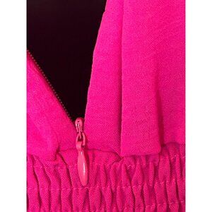 Hot Pink Short Sleeve V-Neck Romper With Elastic Waist & Back Zipper Closure Wom