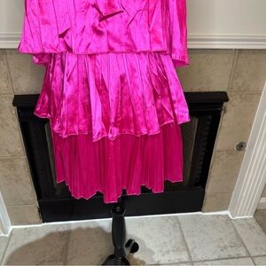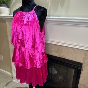 Hot Pink Tiered Pleated Ruffle Mini Dress size Medium Wedding Guest Party Dress
