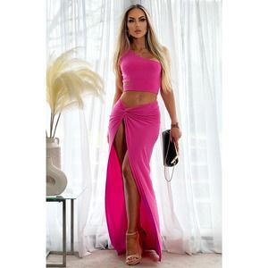 Hot Pink Two Piece Set Skirt and Crop Top