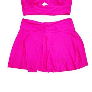 Hot Pink Two-Piece Activewear Set With Ruched Skirt & Padded Top Size XL