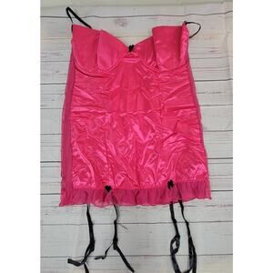 Hot Pink Underwired Semi Sheer Babydoll W/Garter Clips Pink 5XL