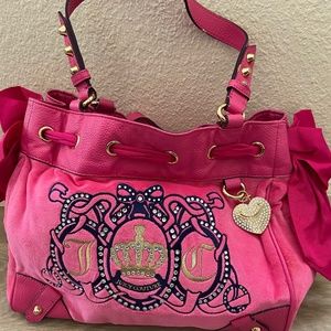 Hot Pink Velour Juicy Couture bag purse pink bling charm gold heart cute